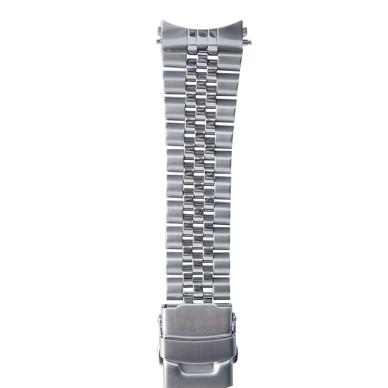 20/22mm Stainless Steel Watchband Curved End Strap Fold Buckle Clasp Wrist Belt Bracelet Silver For Seiko Watch Accessories
